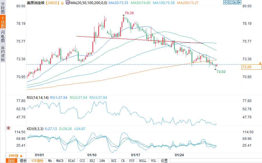 预计今天的交易区间在71.60美元的支撑位和74.60美元的阻力位之间。