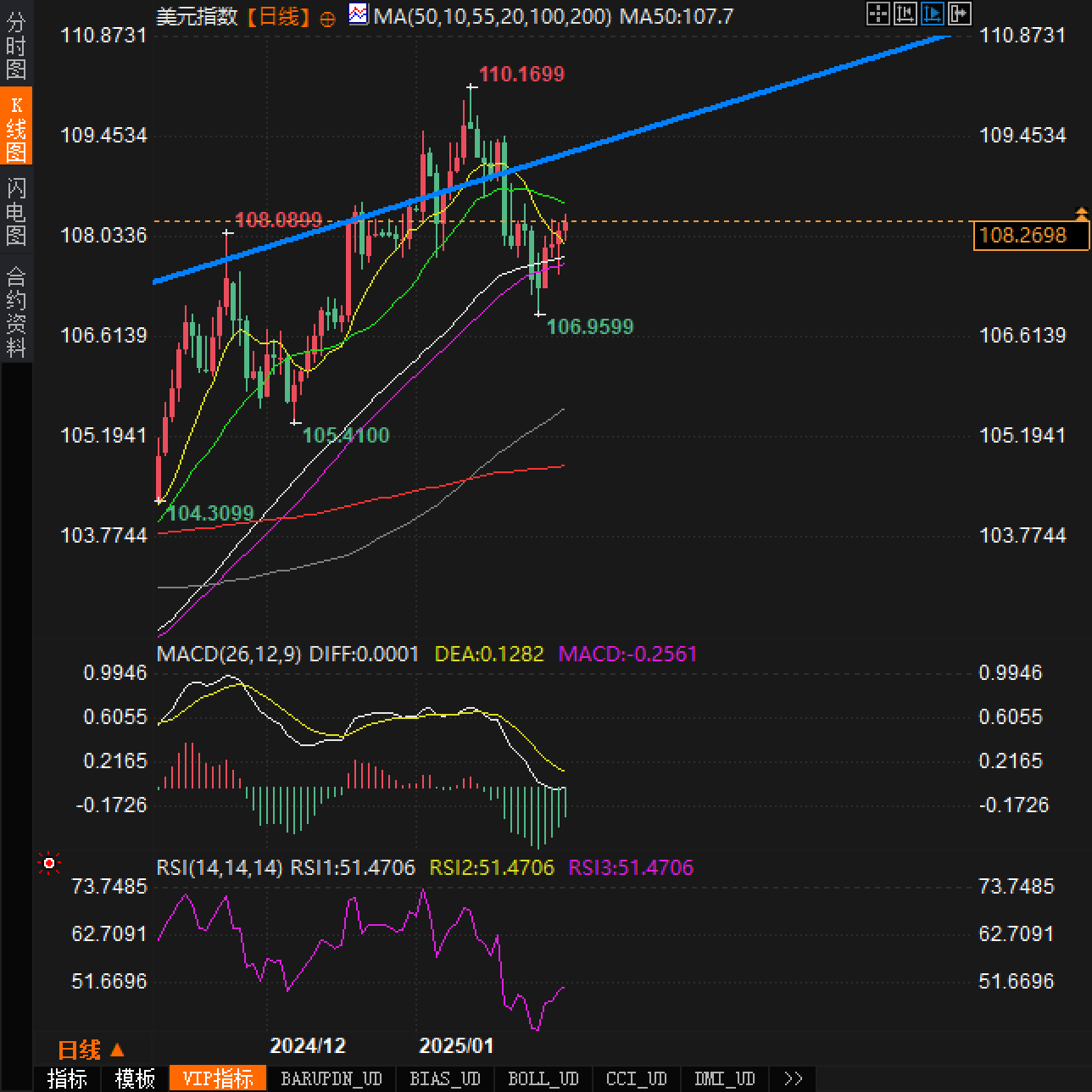 美元指数反弹延续,交投于108.25附近,并且受到多重利好因素的推动。特朗普政府计划对来自墨西哥和加拿大约9000亿美元的商品征收25%的关税,这一举措引发了全球市场的广泛关注。