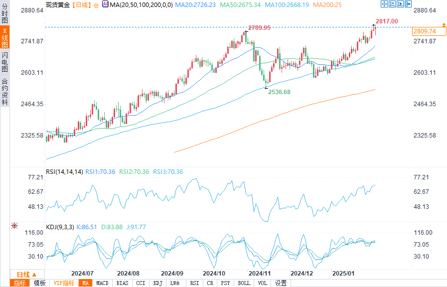 现货黄金报2809.06美元/盎司,涨幅0.30%。