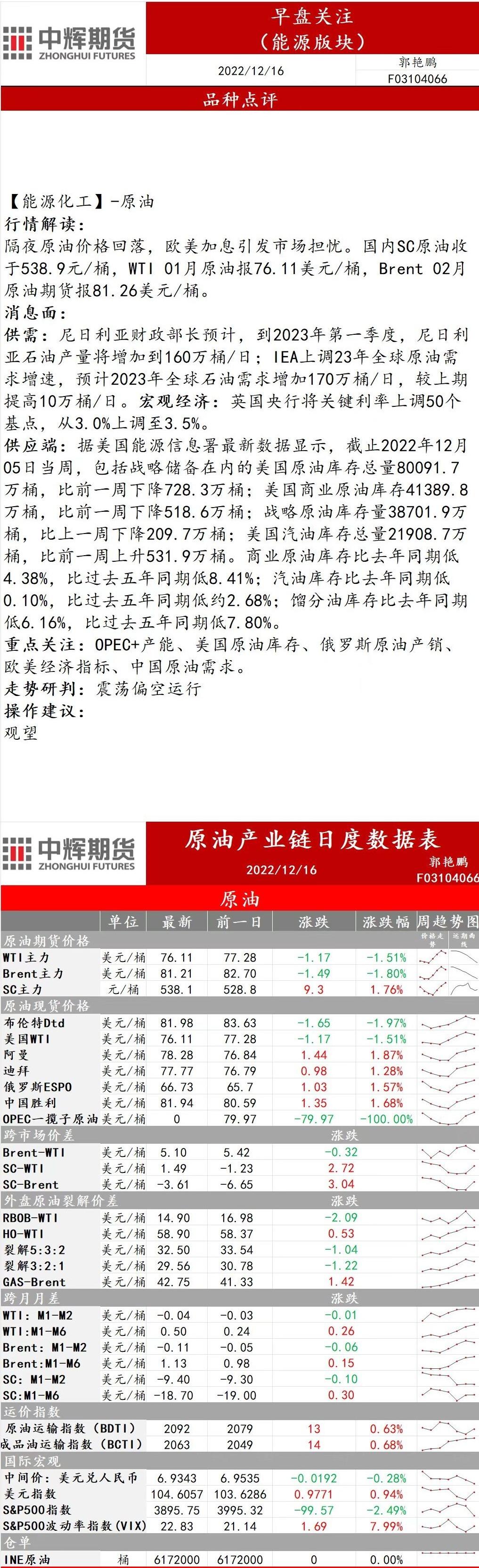 标题:中辉期货能源早盘关注:价格将震荡偏空运行,建议观望