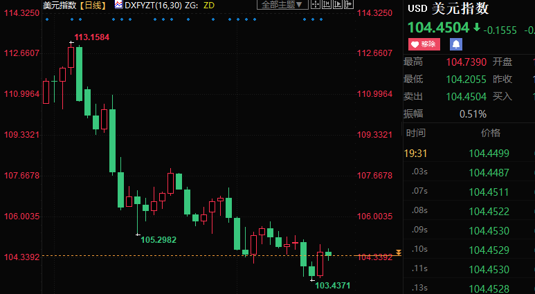 美元指数下跌0.46%至104.452。