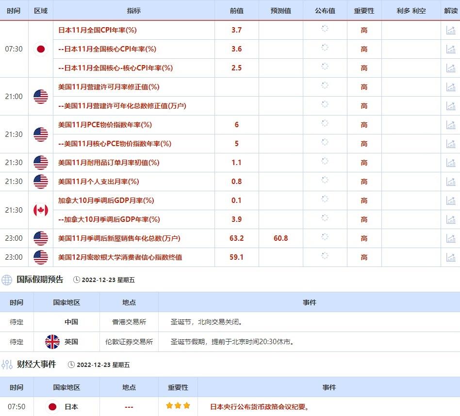 12月23日当天,中国香港交易所因圣诞节,北向交易关闭。英国伦敦证券交易所因圣诞节假期,提前于北京时间20:30休市。除了以上重点数据和大事,投资者还需关注全球疫情以及乌克兰局势,其发展或也将影响全球金融市场,投资者也需保持关注。