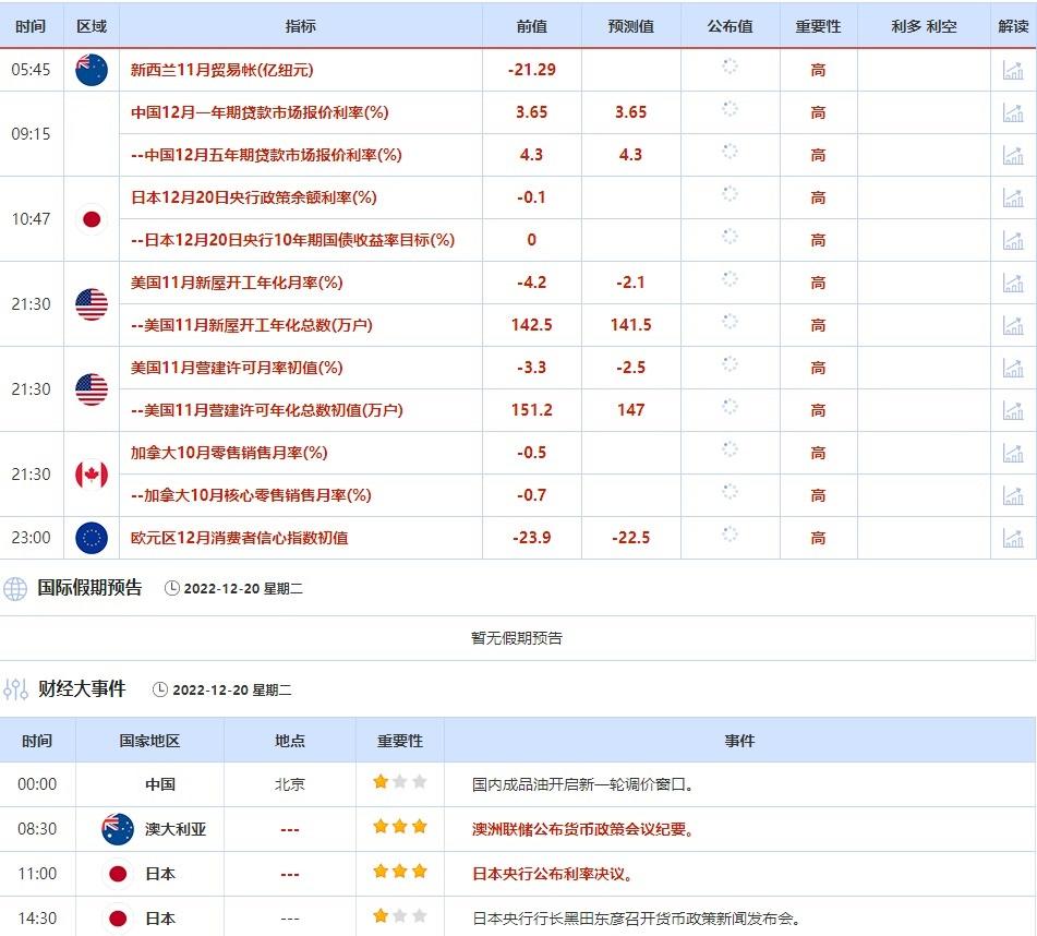 ②12月20日(周二)关键字:日本央行利率决议,欧元区12月消费者信心指数,澳洲联储12月会议纪要