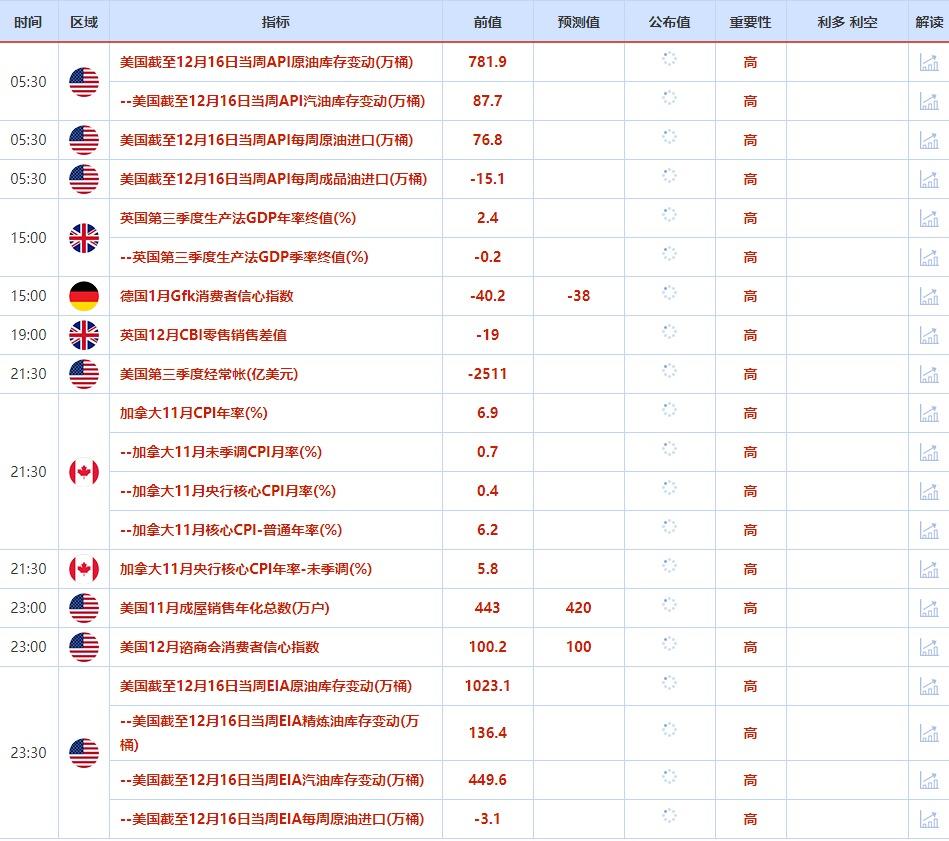 ③12月21日(周三)关键字:美国截至12月16日当周API原油和EIA库存变动,加拿大11月CPI
