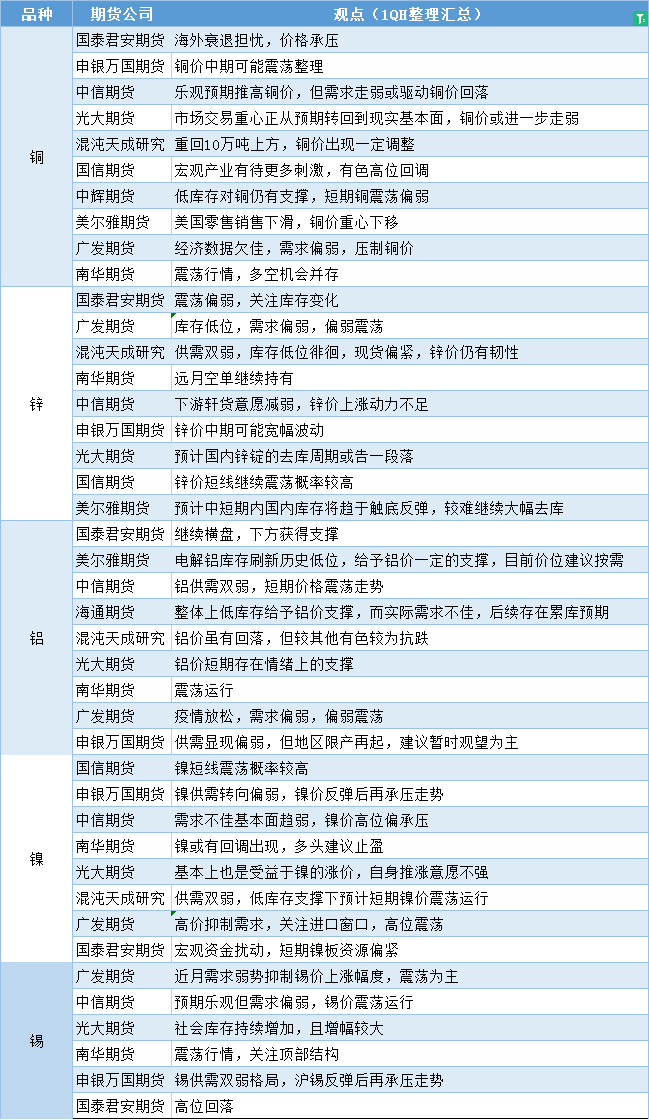 标题:期货公司观点汇总一张图:12月16日有色系(铜、锌、铝、镍、锡等)