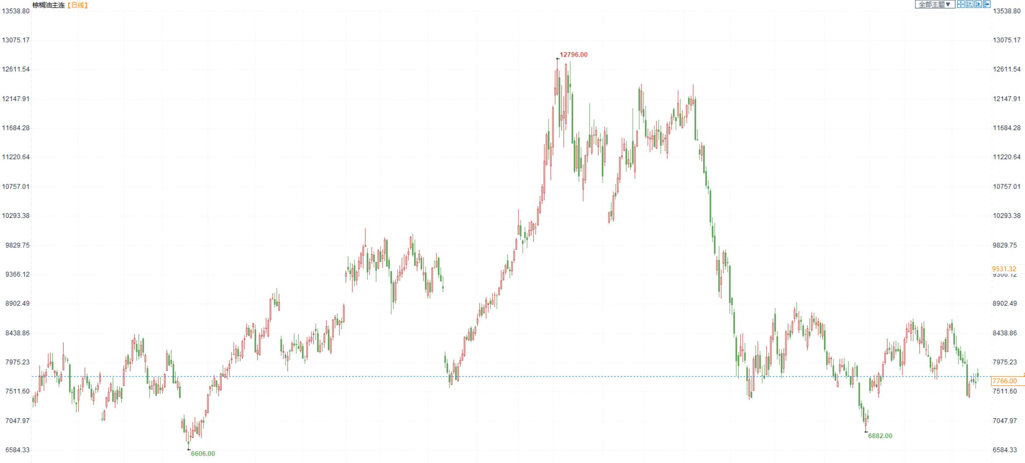 棕榈油2305合约日内跌1.20%,收盘7766元/吨;广州市场棕榈油7550元/吨。