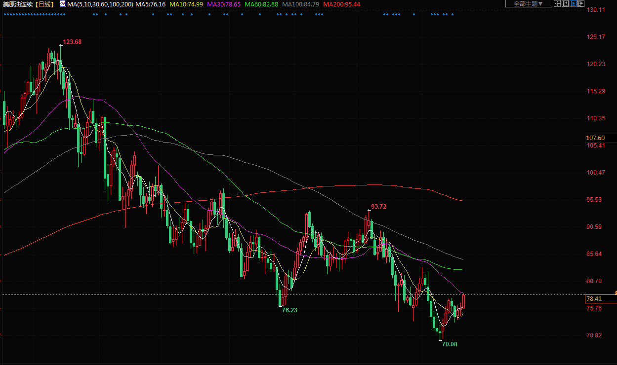 布伦特原油期货上涨2.76%,报每桶82.20美元;美国原油期货上涨2.7%,报78.29美元。美国期金与上一交易日持平,报1825.40美元。