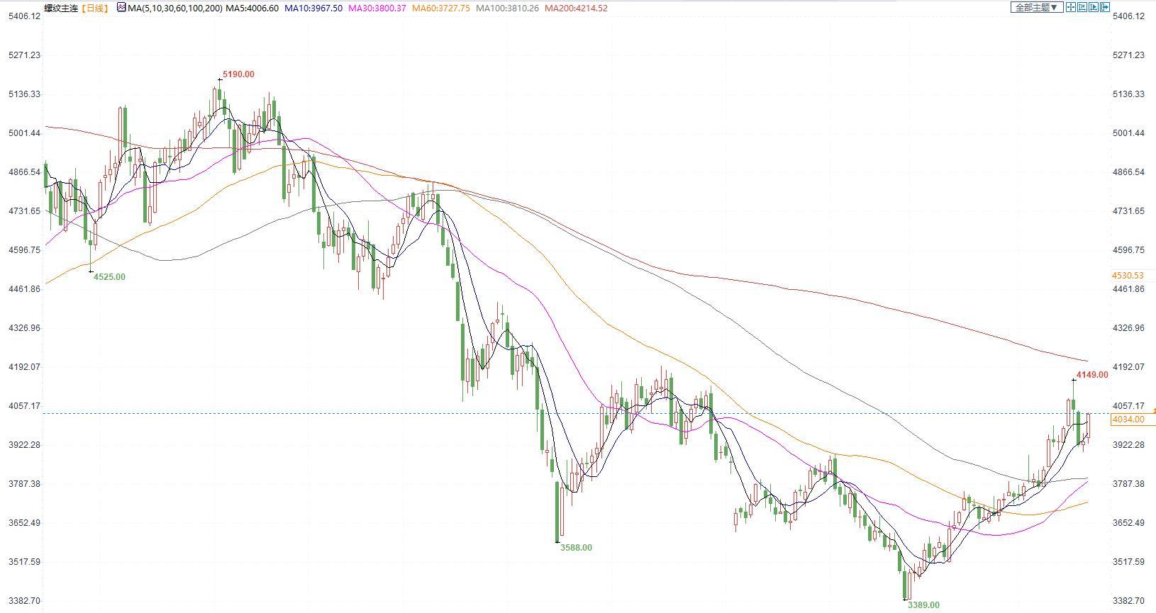 价格:螺纹钢2305合约夜盘震荡整理,今日白天开盘以来缓幅上行,午后加速上行,收盘价4034元/吨,较昨日结算价上涨103点,收涨2.62%。持仓量增加8万余手。上海中天现货价4030元/吨,环比增加40元/吨。