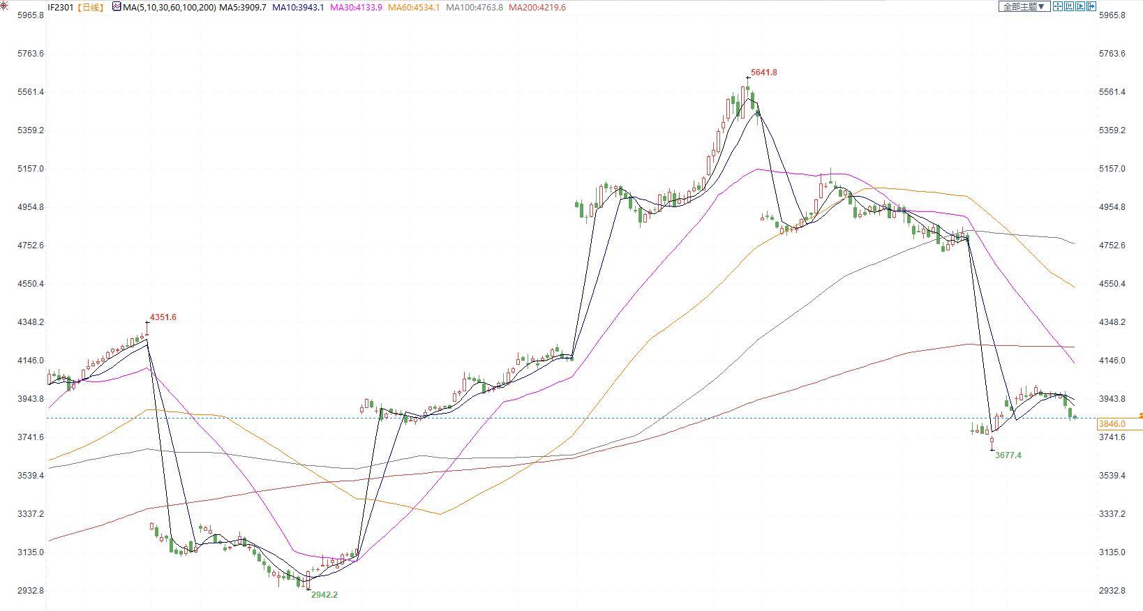 【今日涨跌】四大期指涨跌互现。IH2301收盘价为2610.6,收涨0.19%;IF2301收盘价为3846,收跌0.06%;IC2301收盘价为5865.8,收跌0.60%;IM2301收盘价为6302.2,收跌0.86%。
