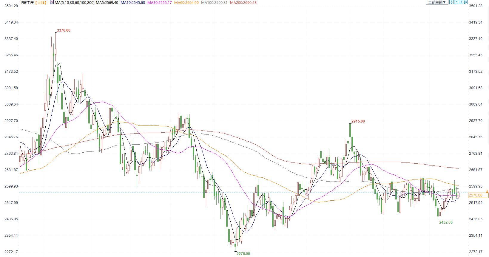 期货市场,甲醇2305合约小幅收涨,收盘价2570。现货端,港口库存较低,目前现货强势于期货。