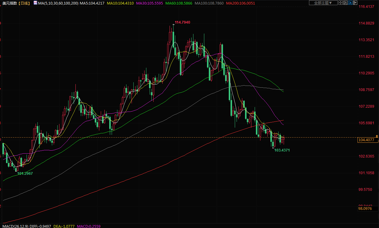 汇通财经APP讯——北京时间周五(12月23日),美元交投于104.42附近;美元周四上涨,此前美国数据显示劳动力市场强劲,可能使美联储的鹰派态度持续更久,金价下跌;油价在震荡交投中下跌,美国冬季风暴导致该国原油库存紧张的影响,被对美联储加息和新冠病例激增将抑制需求的担忧盖过。