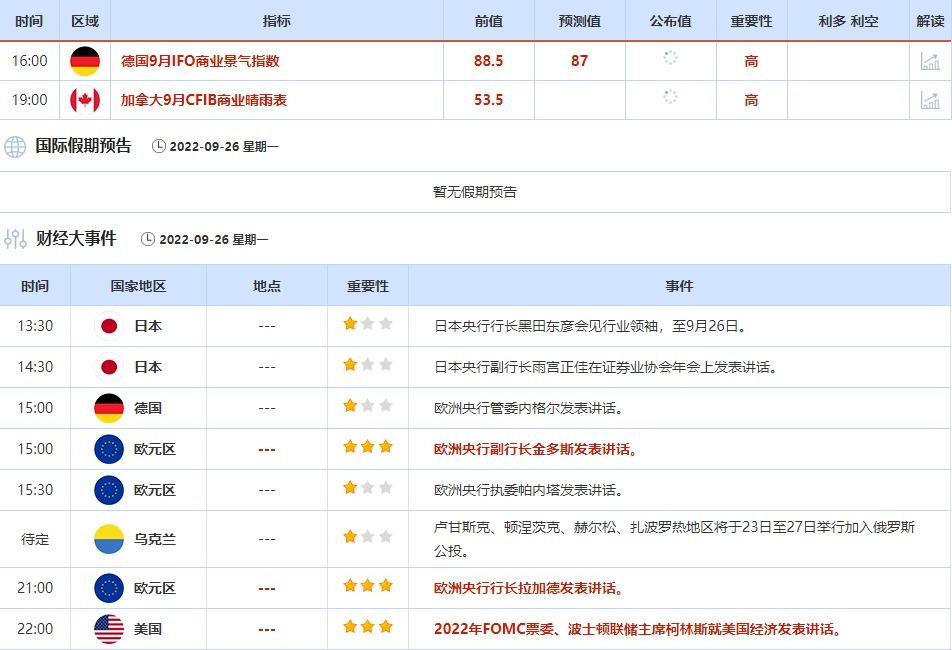 1.法国兴业银行不看好英国财政计划,认为短期将推低英镑法国兴业银行的经济学家表示:“英国的财政计划在我看来是一场巨大的赌博,我不认为其可以使经济出现实际和潜在的逐级增长。这是一种激进的教条主义,在短期内极有可能出现的情况是,政府债券收益率将被大幅推高,并使英镑走势下跌。”