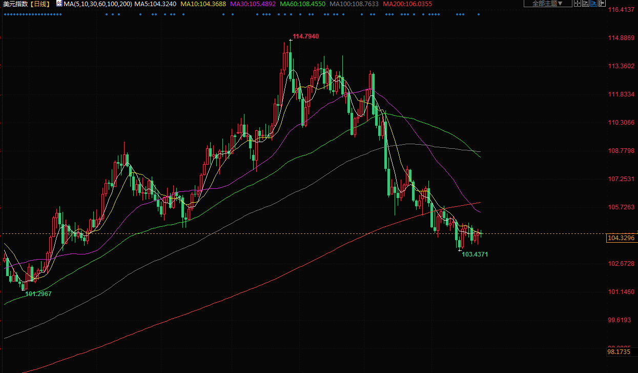 美元指数盘尾变动不大,报104.35。