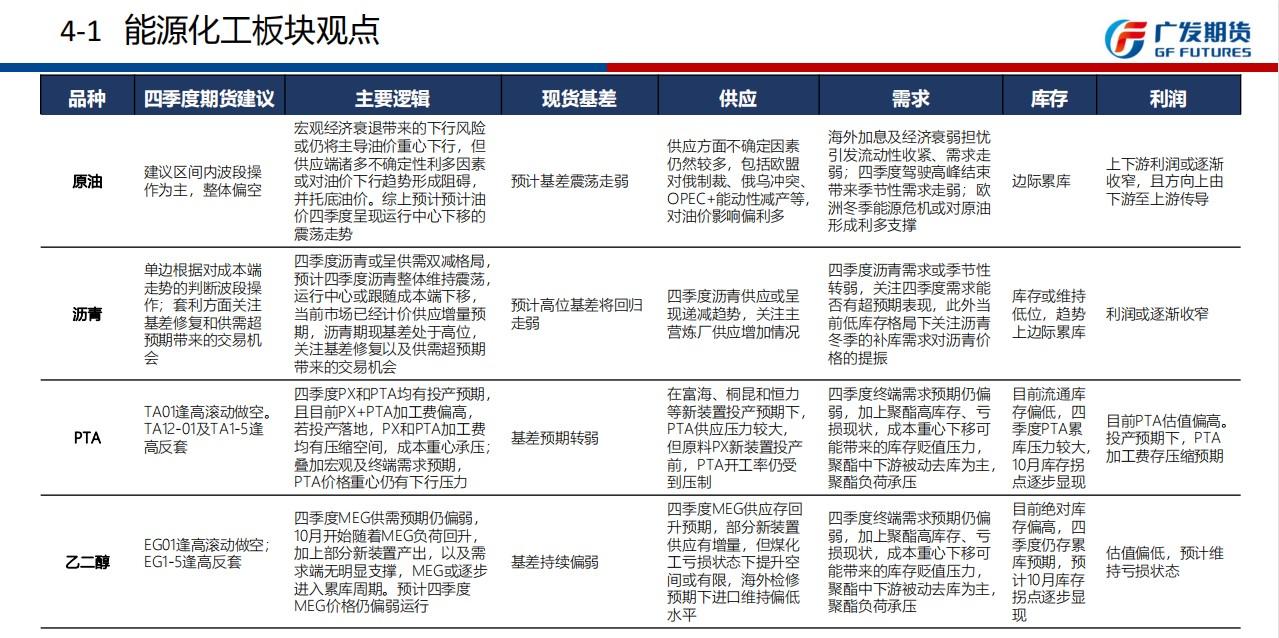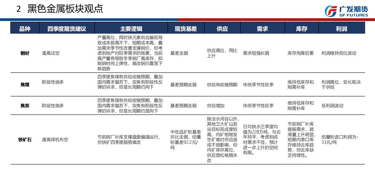 标题:广发期货四季报观点汇总:贵金属短期反弹后逢高做空,铜中长线反弹沽空为主,原油区间内波段操作为主