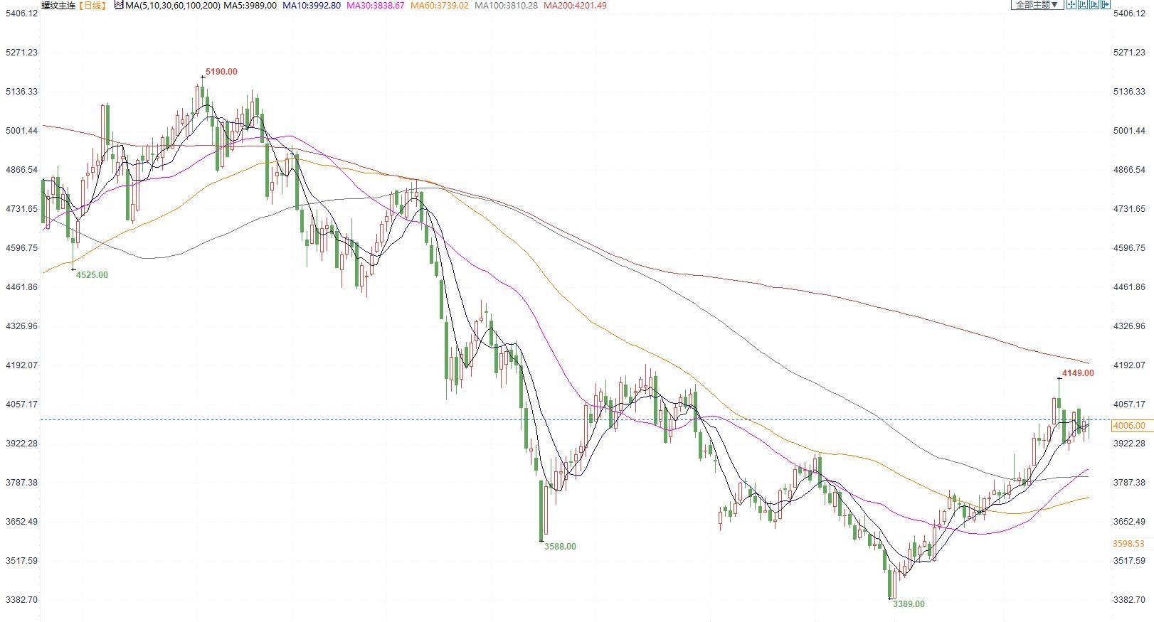 价格:螺纹钢2305合约周五夜盘尾盘出现迅速下行,今天早间开盘继续下行后逐渐震荡回升,日K收十字星。收盘价4006元/吨,小幅收涨0.68%。上海中天现货价4040元/吨,较上周五价格暂稳。