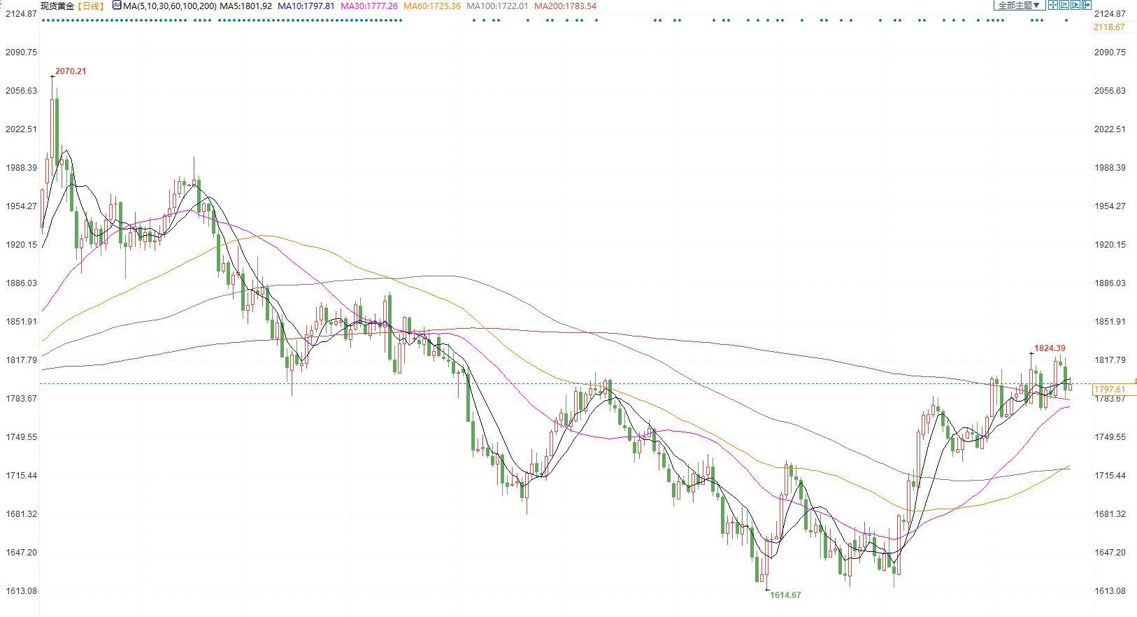 观点及建议:短期重回震荡,中期底部明朗观点未变,金银震荡中中枢有望逐渐上移。