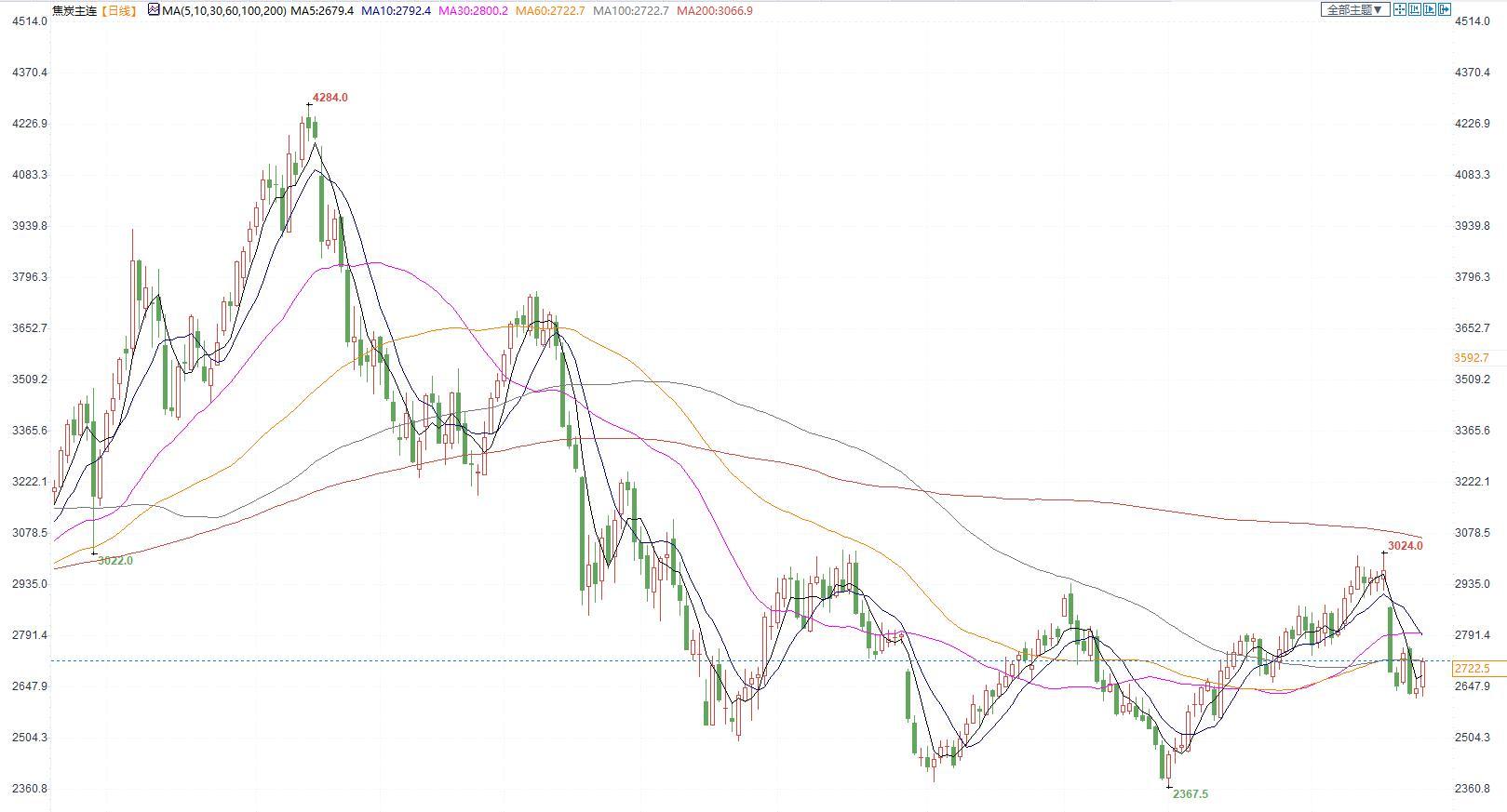 价格:今日05合约2722.5,港口准一级仓单成本2989元/吨。焦炭市场全面落实四轮涨价后暂稳运行
