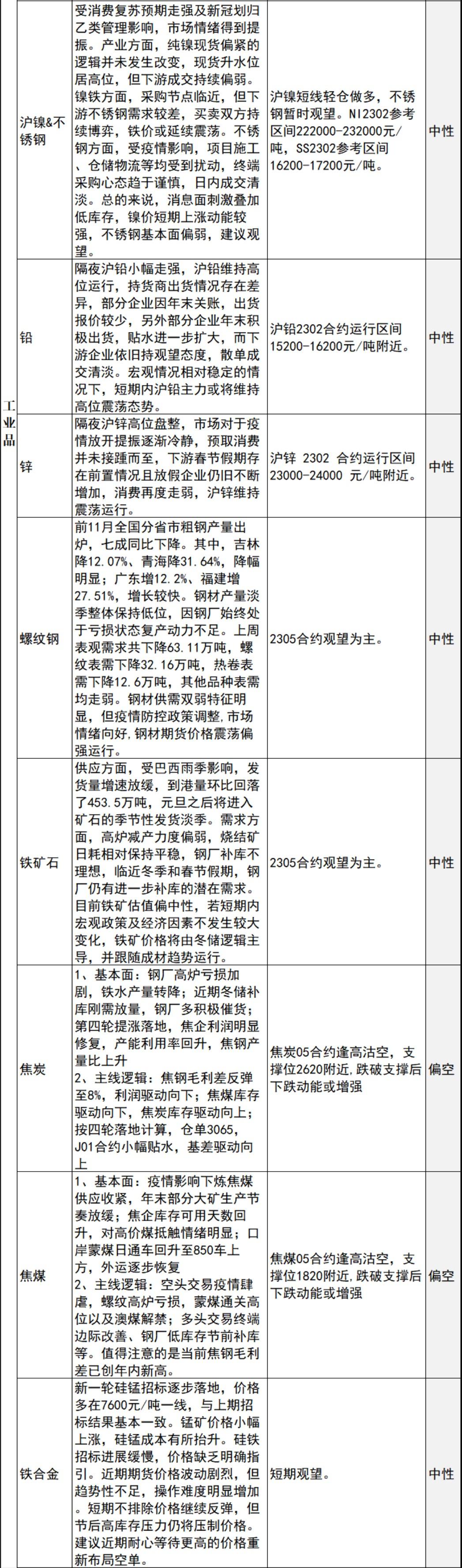 中信建投期货12月28日早间交易策略