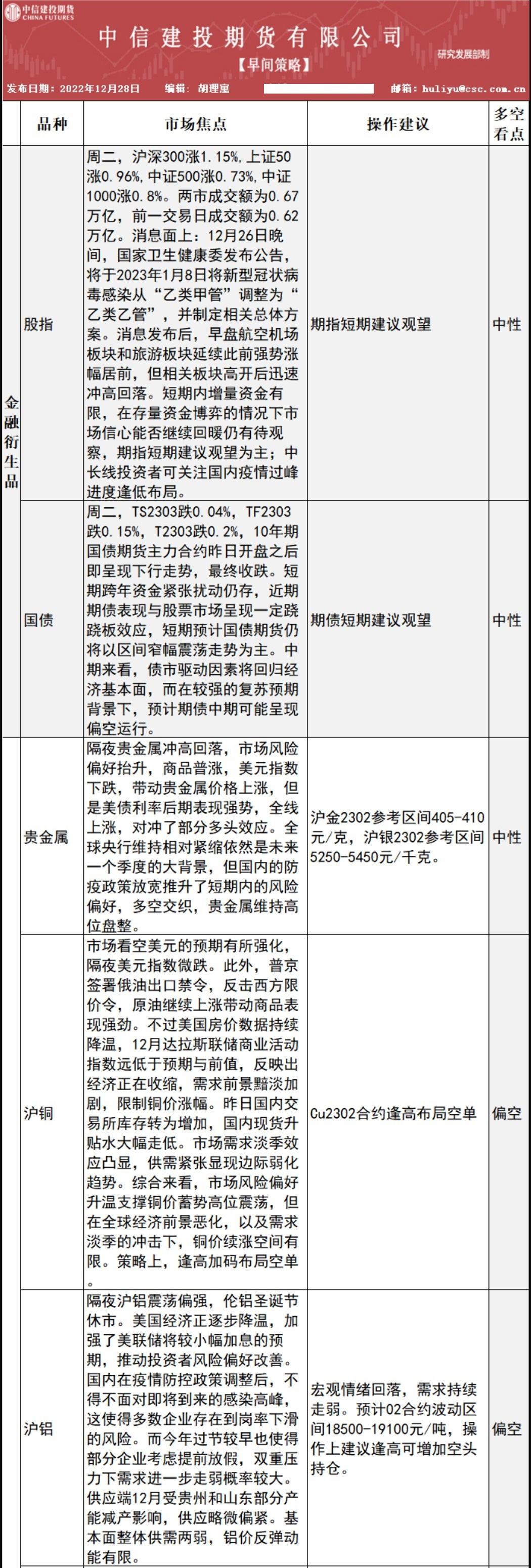 标题:中信建投期货12月28日早间交易策略
