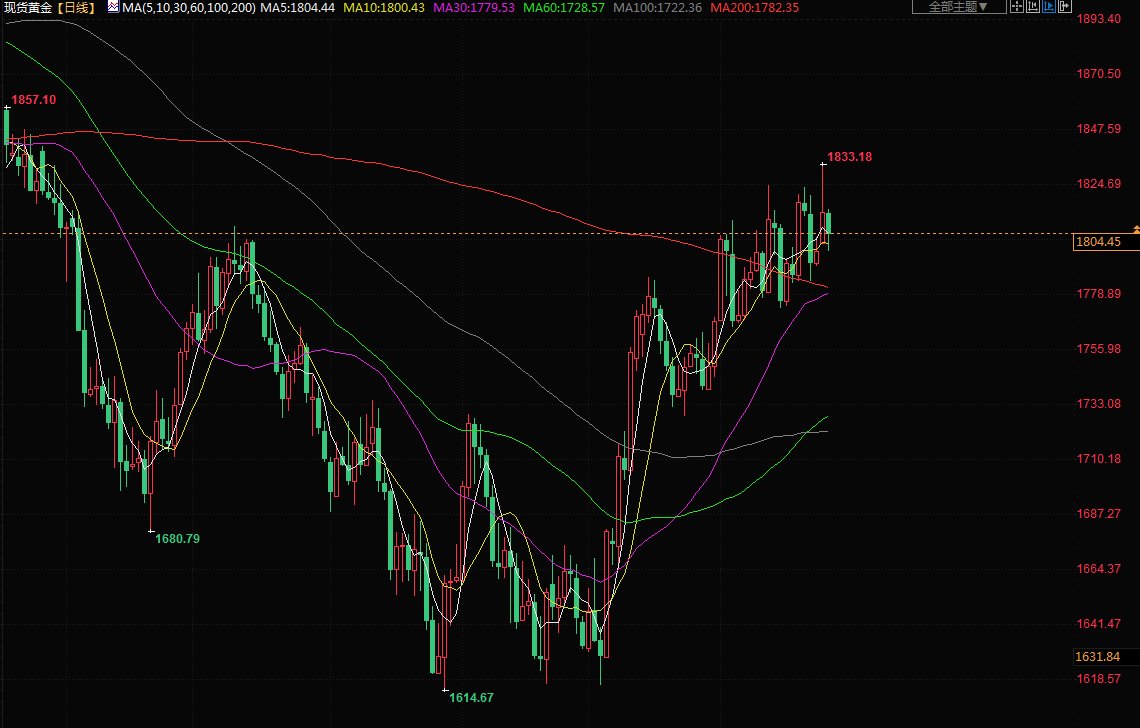 美元指数和美国10年期公债指标收益率都保持在盘中高点附近,对黄金需求造成压力。 黄金从9月份创下的两年多低点上涨了约200美元,因预期美联储将放缓加息步伐,增加了这种非孳息资产的吸引力。