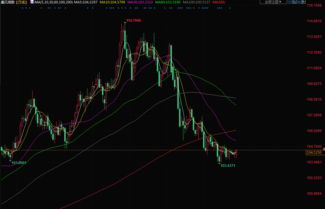美元指数创下了103.44的六个月低点。