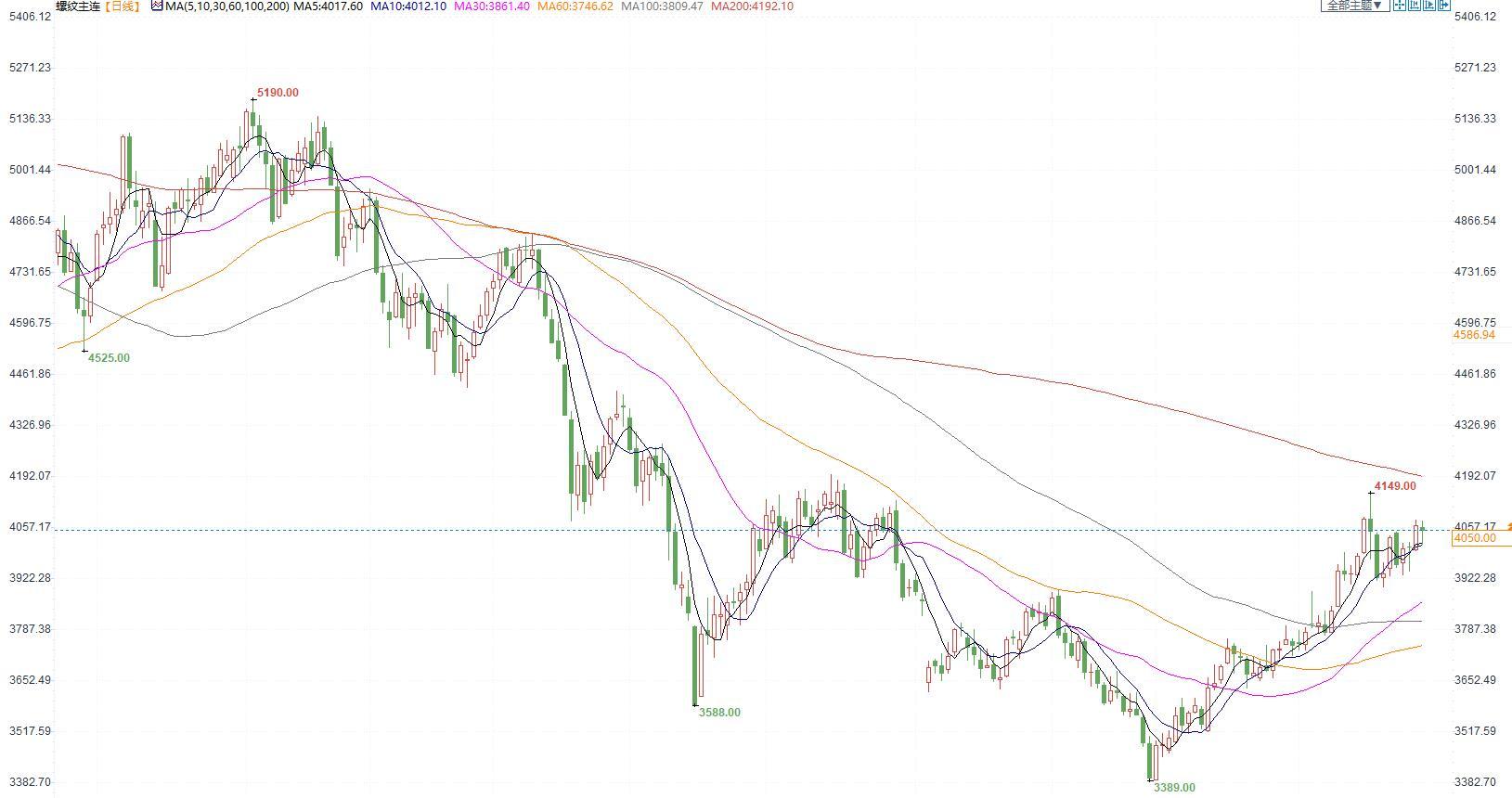 价格:螺纹钢2305合约今日继续窄幅震荡,收盘价4050元/吨,小幅收涨0.27%。上海中天现货价4060元/吨,较昨日暂稳。
