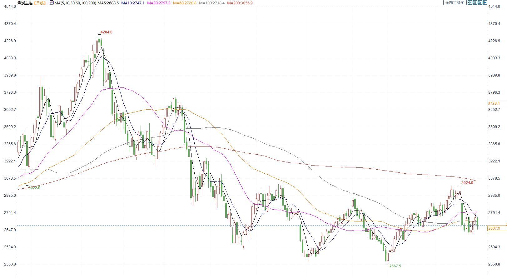 价格:今日05合约收于2687,延续高位震荡运行,港口准一级仓单成本2967元/吨,焦炭市场暂稳运行。