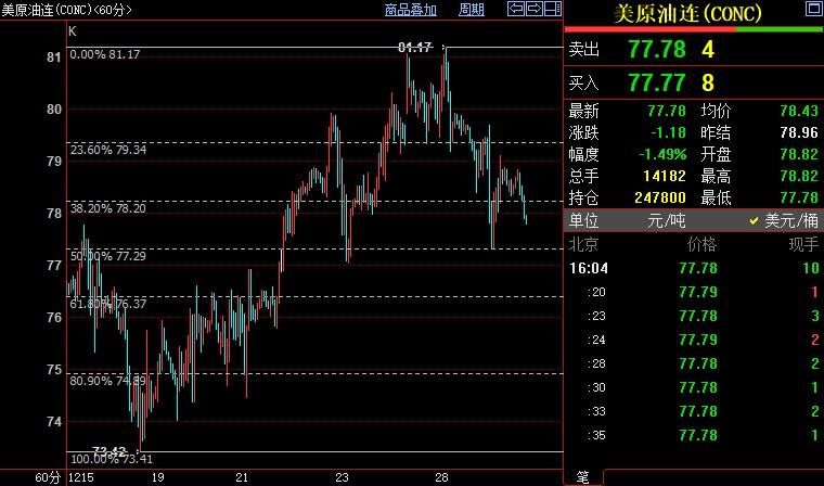 NYMEX原油料跌破77.30美元