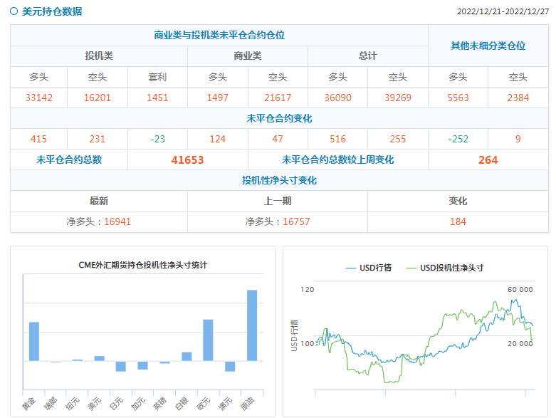 截至2022年12月27日的一周内,投机者将美国10年期国债期货净空头头寸增加27266手,至344209手;将美国2年期国债期货净空头头寸增加44588手,至550645手;将美国超级债券国债期货净空头头寸增加7102手,至368903手,将CBOT美国国债期货净空头头寸增加9727手,至151064手,将美国5年期国债期货净空头头寸削减7066手,至655528手。