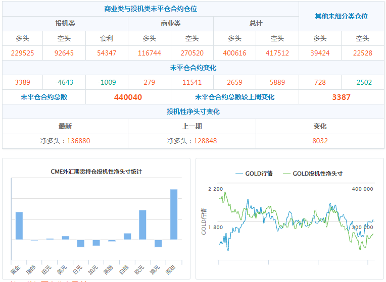 标题:CFTC商品持仓解读:黄金净多头头寸创最近逾六个月新高