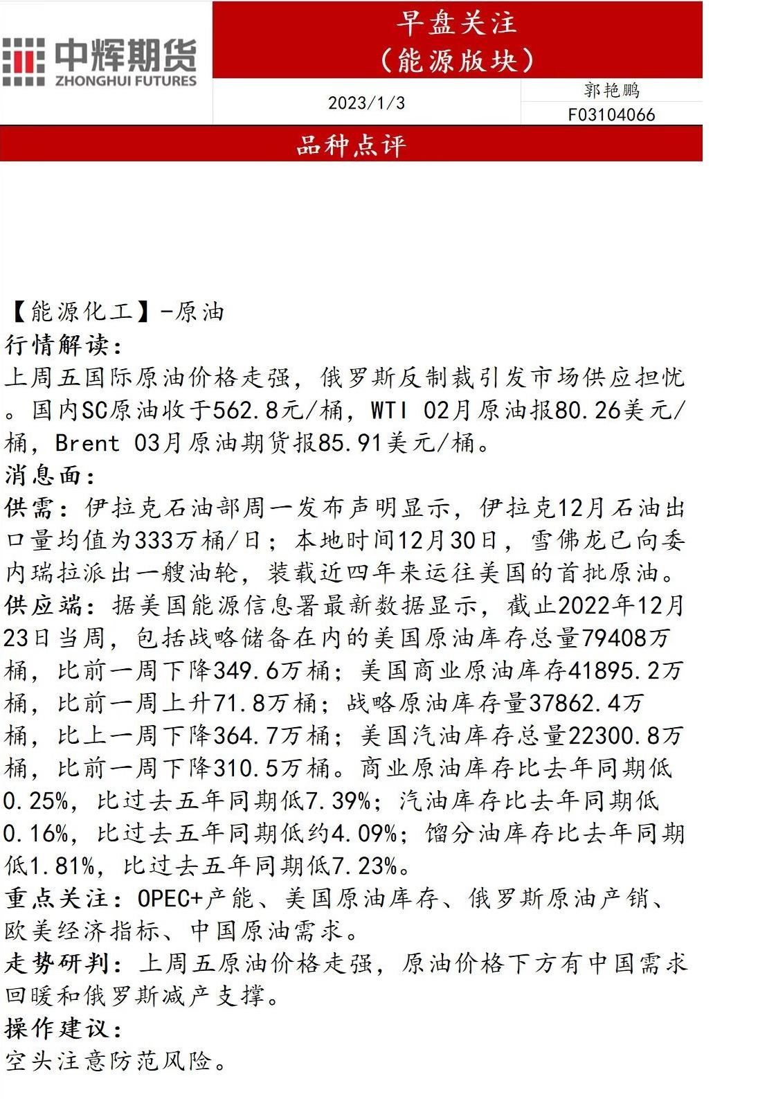 标题:中辉期货能源早盘关注:价格有支撑,空头注意防范风险