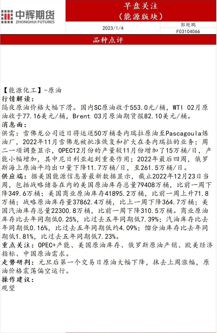 中辉期货能源早盘关注:原油价格震荡偏空运行,建议观望