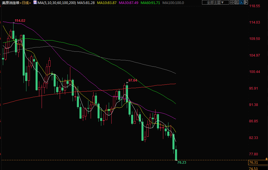 布伦特原油期货结算价下跌2.4%,报每桶84.06美元,跌穿了1月14日触及的低位。11月美国原油期货下跌2.3%,报每桶76.71美元,为1月6日以来最低。美国期金下跌1.3%,结算价报1633.40美元。