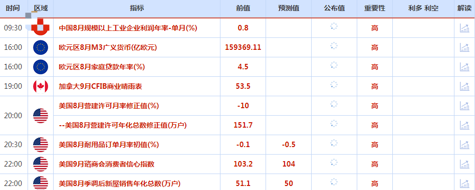 美元指数交投于114.12附近;美元周一再度刷新二十年高位至114.68,受益于英镑骤降超500镑和欧元创下二十年新低的帮助,投资者担心英国的新经济计划将损害该国财政状况,金价徘徊在两年半低位附近;油价收于九个月最低,受累于美元走强,市场参与者在等待对俄罗斯新制裁的细节。