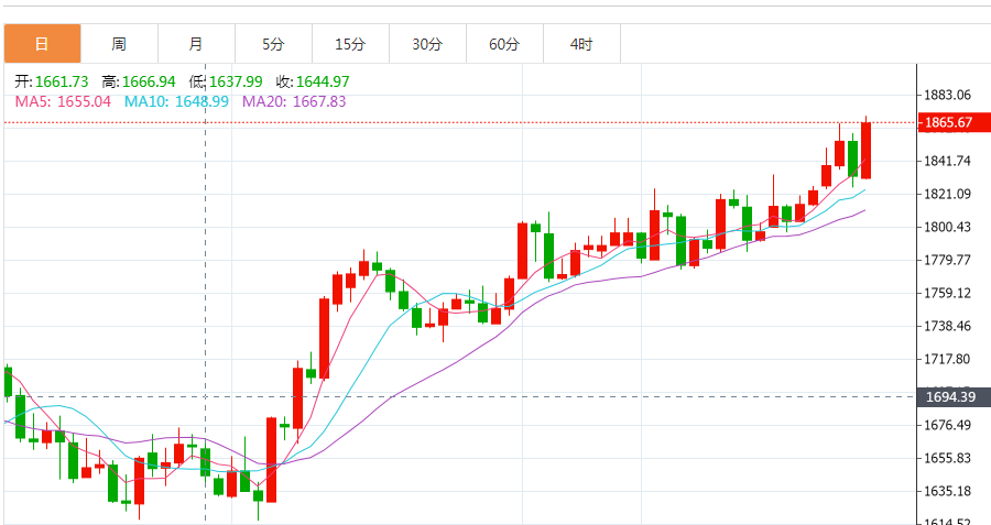 现货金跳涨1.9%,至每盎司1867.18美元,为去年6月13日以来最高。本周迄今为止,现货金已涨约2.1%,为12月2日当周以来最大周线升幅。