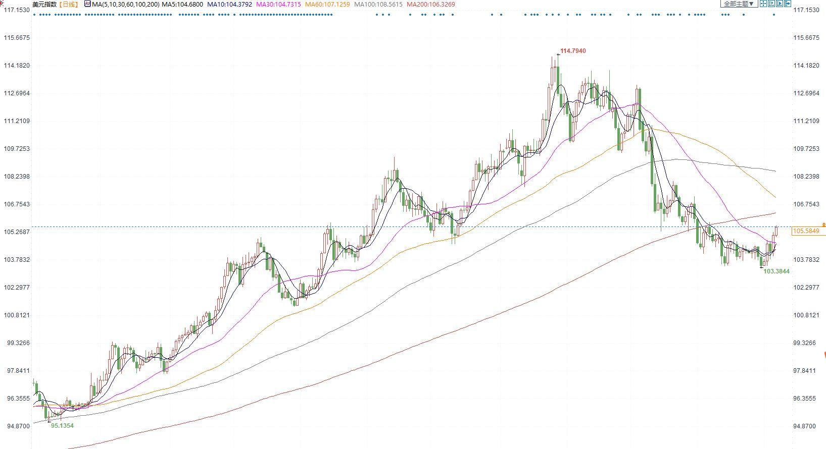 美元指数震荡攀升,势将连续两周上涨。一系列强劲的就业数据凸显出美国劳动力市场仍然紧俏,在美联储努力降低顽固的高通胀之际,就业市场吃紧可能迫使美联储维持积极加息路径。与此同时,全球经济衰退的担忧情绪犹存,这也激发了美元的避险需求。