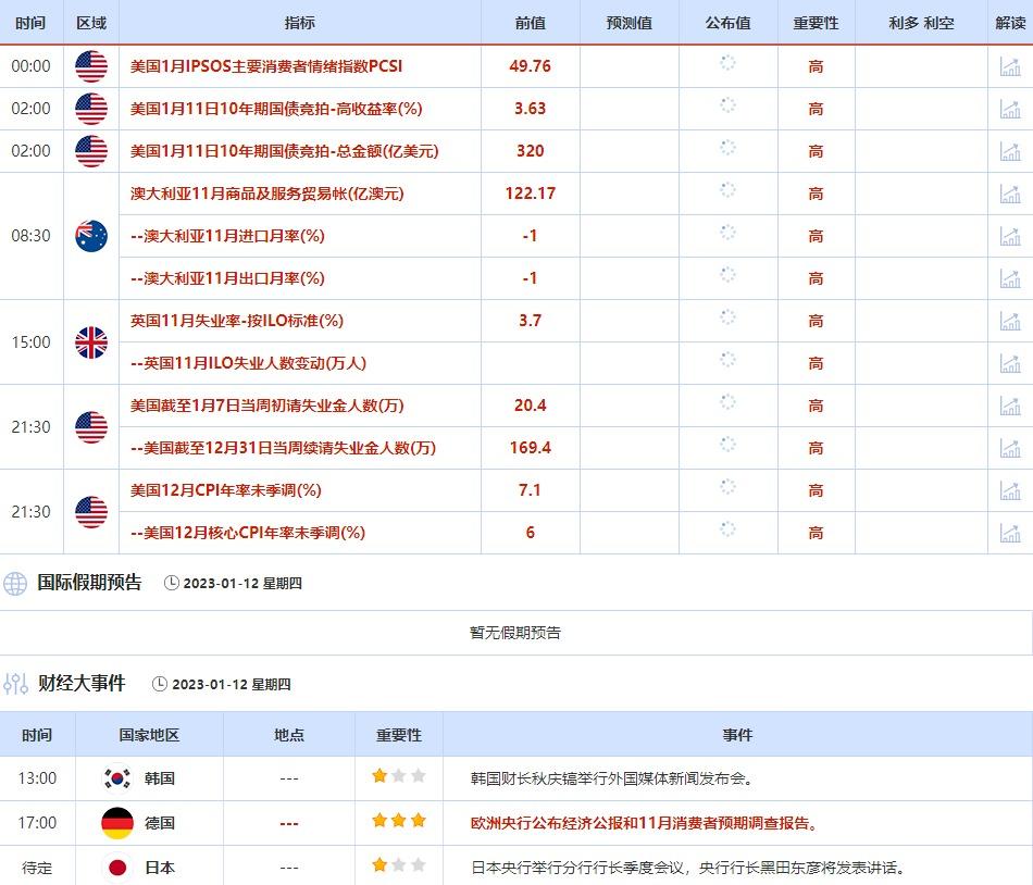 ④1月12日(周四)关键字:美国截至1月7日当周初请失业金人数,美国12月CPI