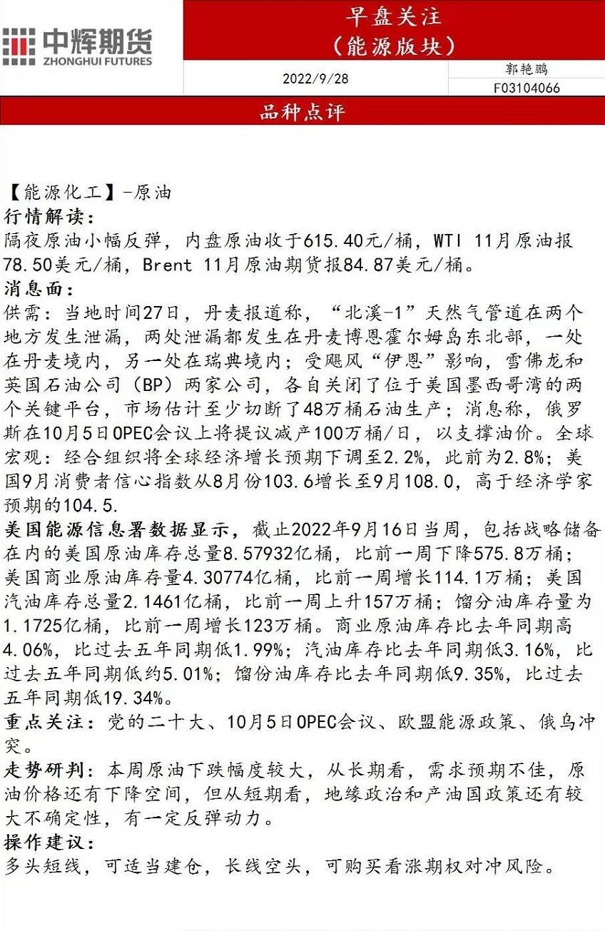 中辉期货能源早盘关注:建议多头短线,可适当建仓,长线空头,可购买看涨期权对冲风险