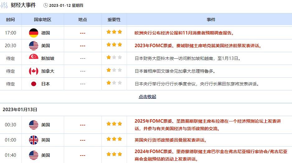 最明确倾向支持加息25BP的美联储官员现身波士顿联储主席柯林斯明确地表示倾向于2月份加息25个基点。柯林斯表示,“我认为加息25或50个基点是合理的;现阶段,我倾向于25基点,但这主要看数据。随着我们接近将加息至维持不变的水平,慢慢调整会让我们在每一次决策前有更多时间评估即将到来的数据。缩小调整幅度给我们提供了更大的灵活性。”柯林斯表示,她倾向于今年将利率提高至略高于5%的水平,可能会在2月、3月和5月三次加息25个基点,然后维持到2023年底。柯林斯非今年票委,但在做出决定时,她将参与审议。
