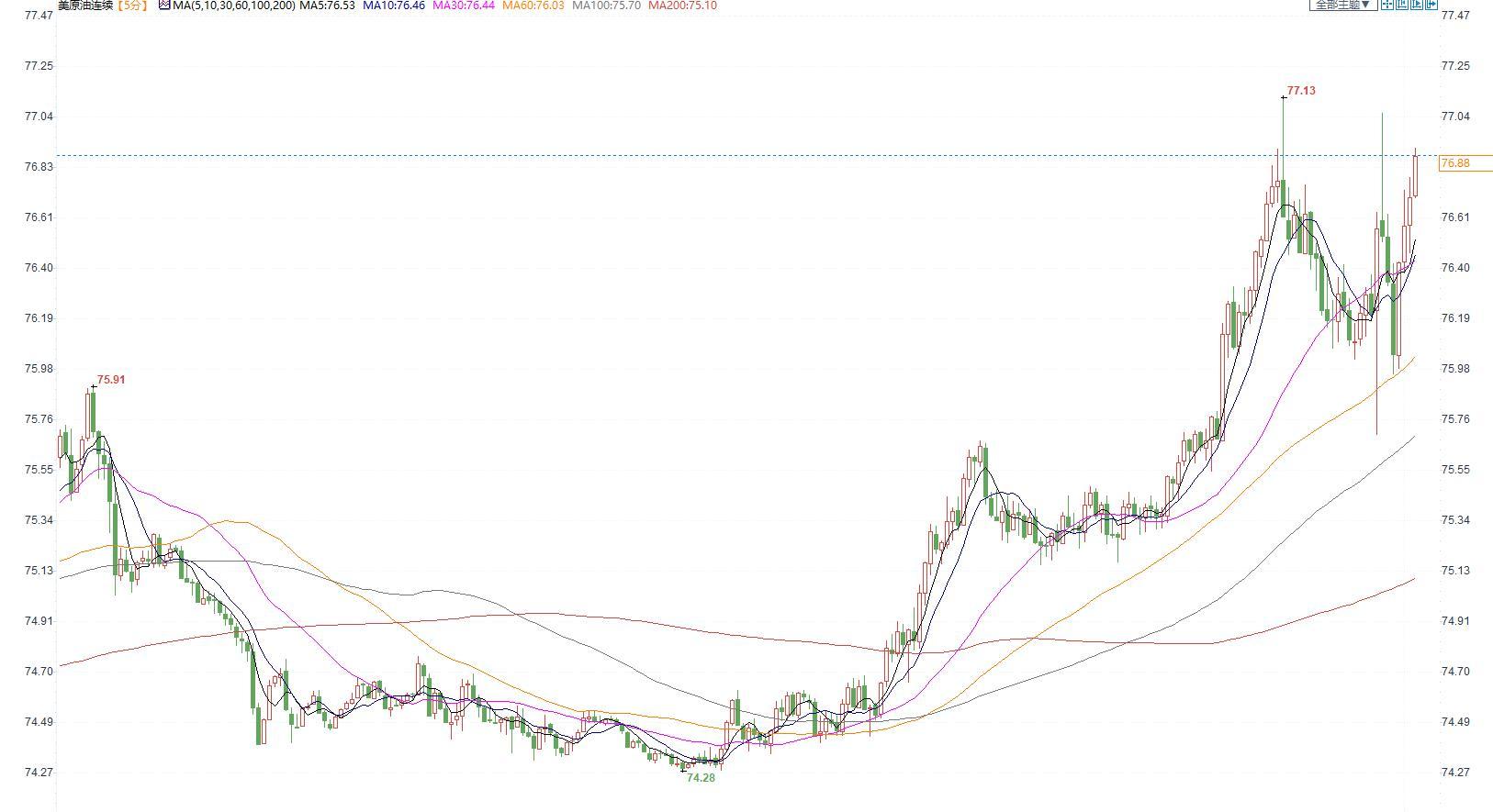 美国原油价格5分钟图显示