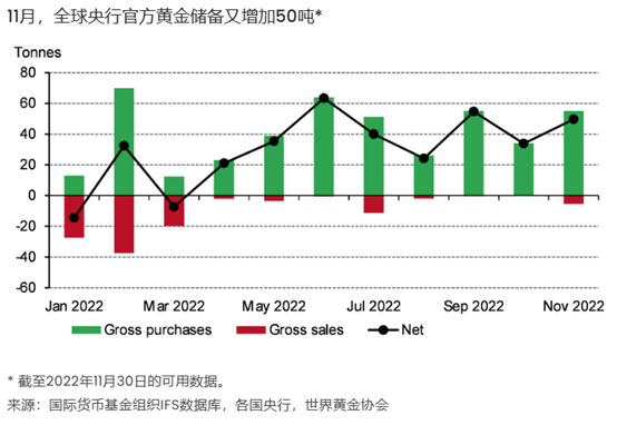 对于近期的央行黄金增持,世界黄金协会数据经理Krishan Gopaul发文表示,去年11月,全球央行净购金50吨,较10月份34吨的购金量(修订)增加了47%。其中,有三家央行共计购入55吨黄金,两家央行共计售出5吨黄金,总体显示出央行对黄金的强劲需求。