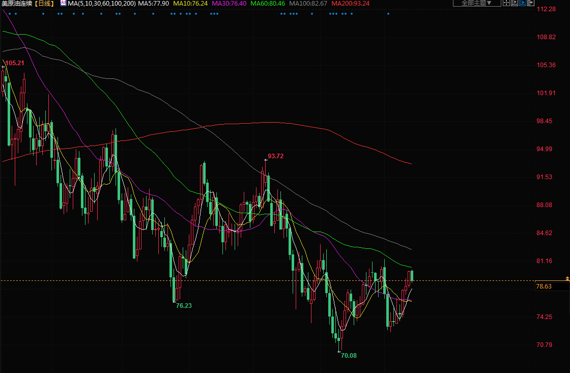 油价周一下跌,但维持在本月迄今最高水平附近,放宽新冠限制,提高其需求复苏的希望。