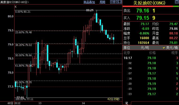 NYMEX原油料下探78.56美元