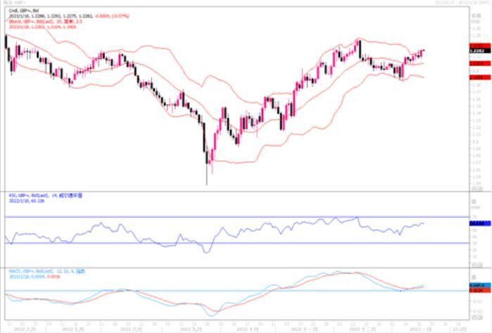 飙涨0.79%,创下五周新高至1.2300水平。英国国家统计局表示,9月至11月期间,扣除奖金的平均周薪同比增长6.4%,创下自2001年开始有记录以来的最大增幅,其中不包括疫情期间封城及政府补助措施导致的异常涨幅。国家统计局表示,同时期的英国失业率保持在3.7%,符合市场预测,接近近50年来的最低水平。数据显示劳动力市场紧张、薪资增长加速,增加了英国央行对通胀的担忧,同时也提升了市场对于英央行将继续提升加息幅度的预期。这是英镑目前得到良好支撑的主要原因之一。1小时图上,