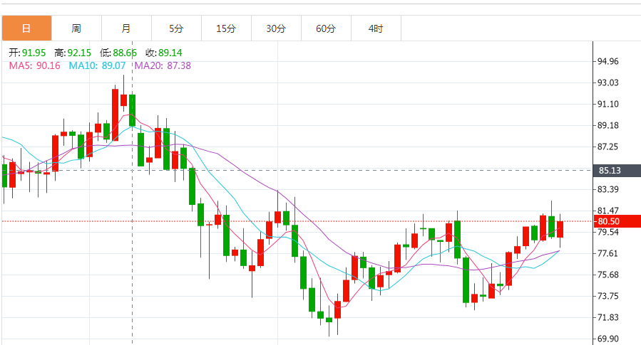 商品收盘情况:布伦特原油期货上涨1.4%,收报每桶86.16美元;美国原油期货上涨1.1%,收报每桶80.33美元。美国期金结算价报1923.9美元,上涨0.9%。