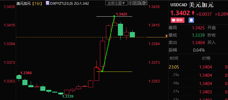 标题:加银如期进一步放缓加息,美元兑加元短线上涨55点
