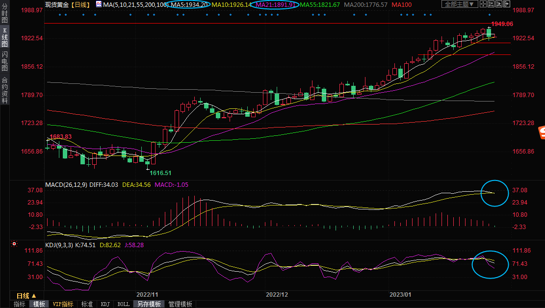 技术面来看,日线级别,金价在高位出现一阴吞多阳的K线组合,而且MACD初步死叉,KDJ死叉,金价短线面临的见顶风险显著增加,投资者需要予以警惕。不过,本交易日还将迎来美国12月份PCE数据,这是美联储重点监控的通胀数据,投资者也需要重点关注,目前市场预计通胀增速可能会放缓至逾一年低位,这有望强化美联储放缓加息步伐的预期,数据出炉前可能会限制金价的下跌空间。独立分析师Ross Norman表示,在下周美联储会议前,周五出炉的核心个人消费支出数据将对多头和空头心理均产生影响。