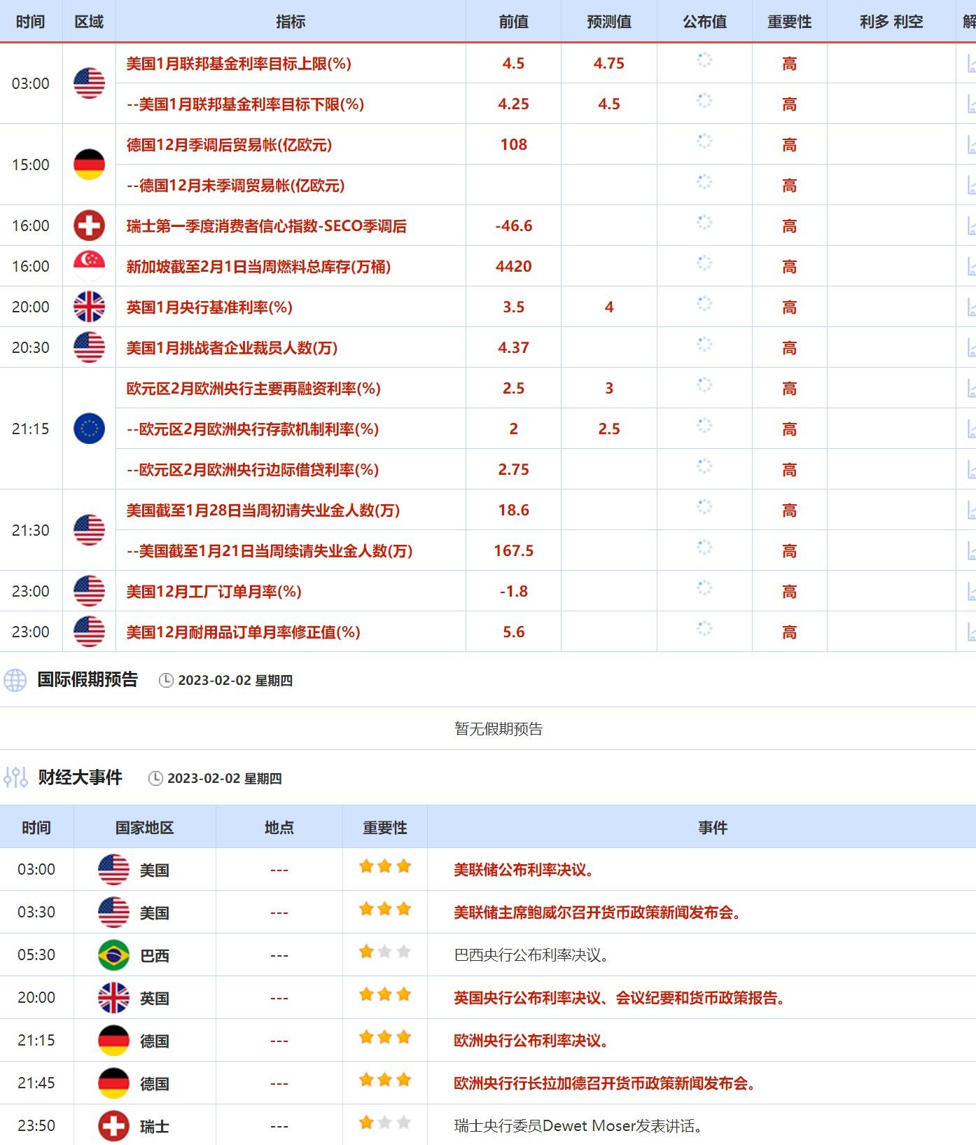 2月2日,投资者需关注美联储、英国央行和欧洲央行利率决议。