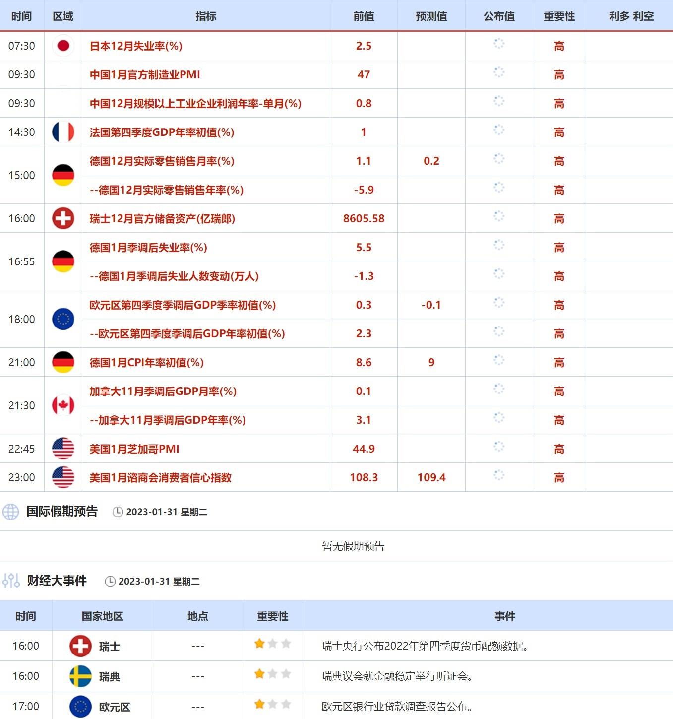 ②1月31日(周二)关键字:欧元区第四季度GDP,美国1月芝加哥PMI