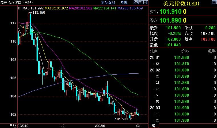 美元指数跌破101.50(2023年1月26日低点),后市将跌向101.29(2022年5月30日低点)和100.00重要心理关口。上行方面,短期阻力是102.89(1月18日高点),其次是105.63(1月6日月高点),然后是106.47(200日均线)。
